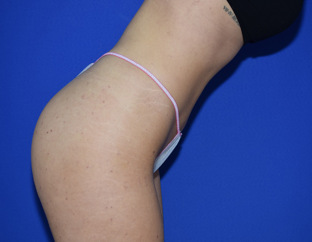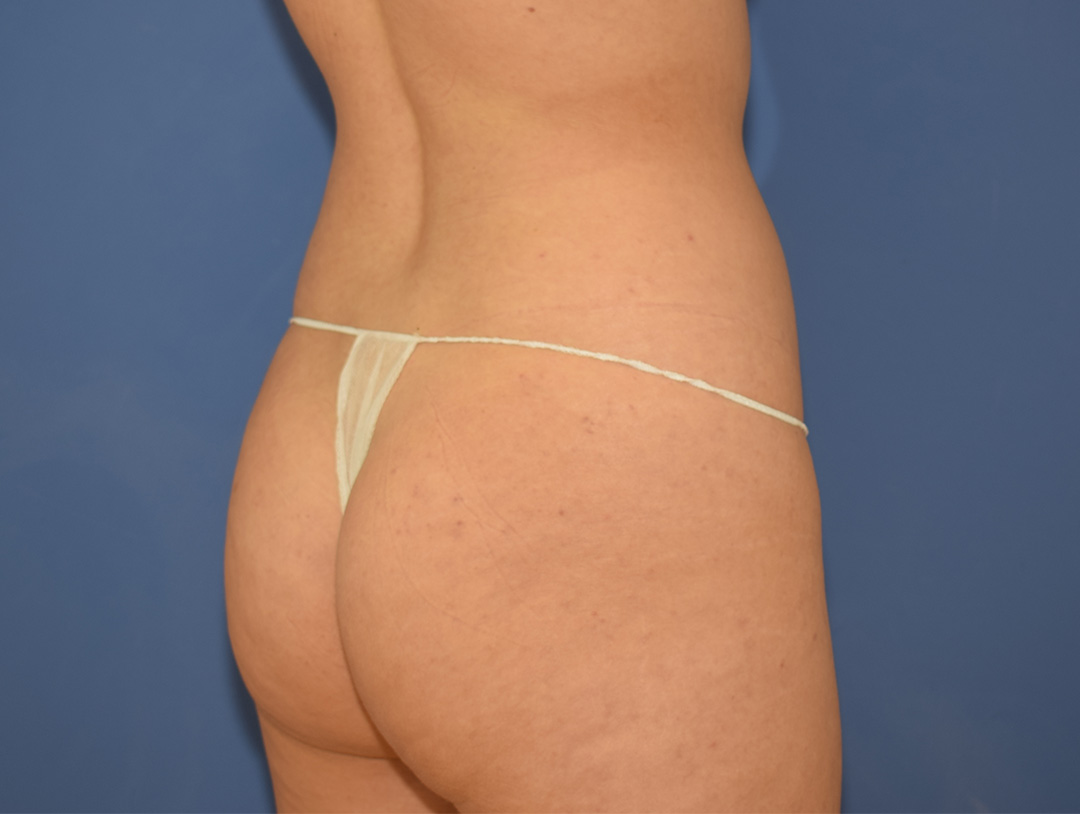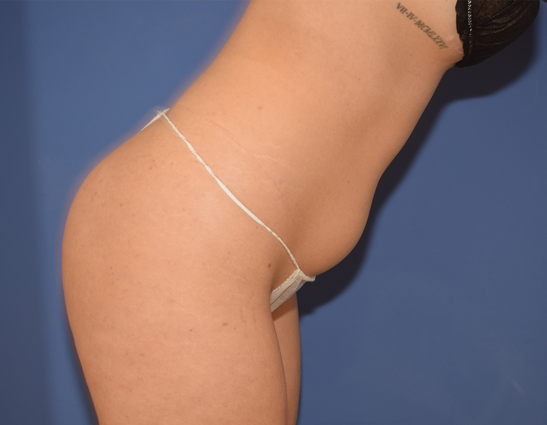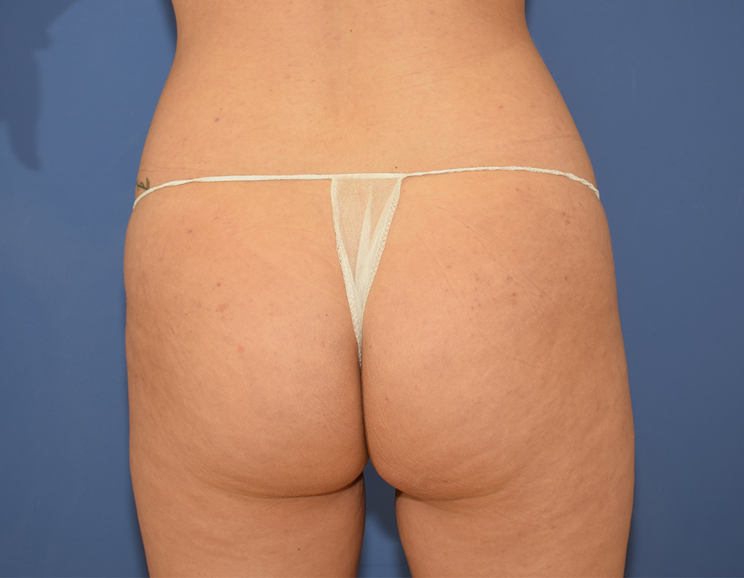 Die Patientin stört trotz Training ihr GesĂ€Ăbereich. Sie wĂŒnscht sie hĂ€tte gerne mehr Volumen im GesĂ€Ăbereich, aber auch zentral am GesĂ€Ă.