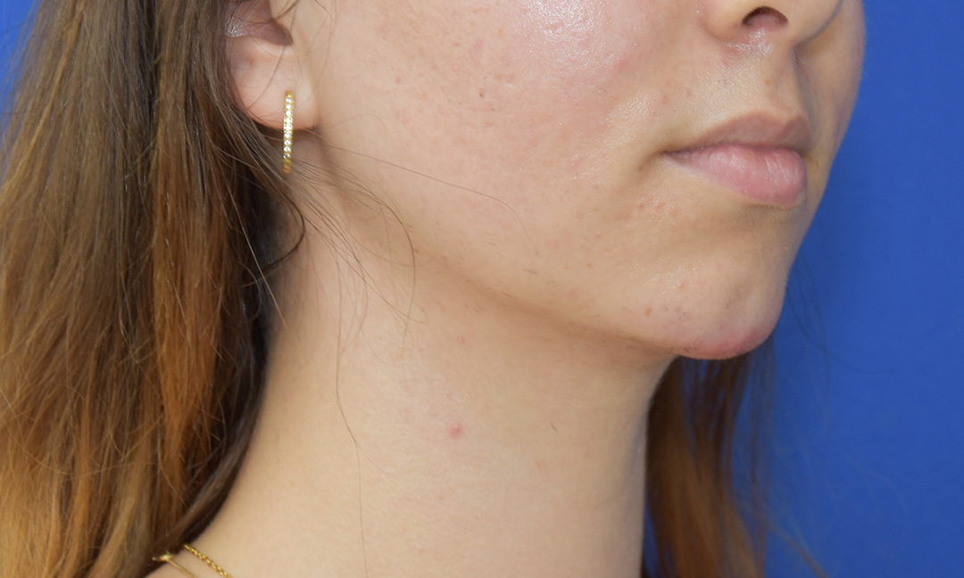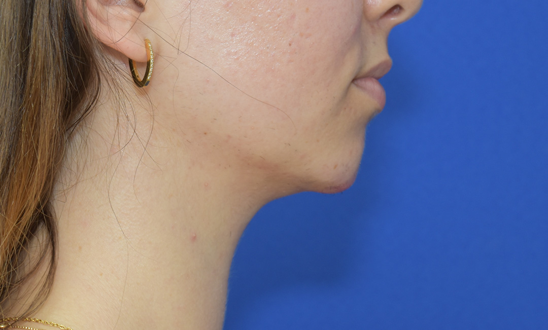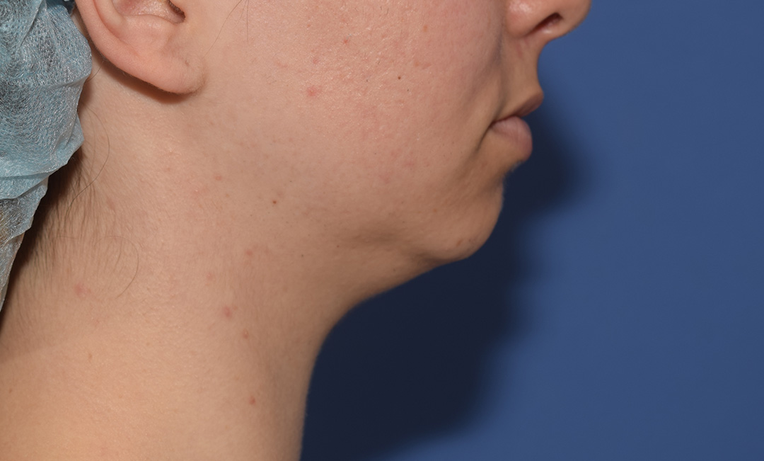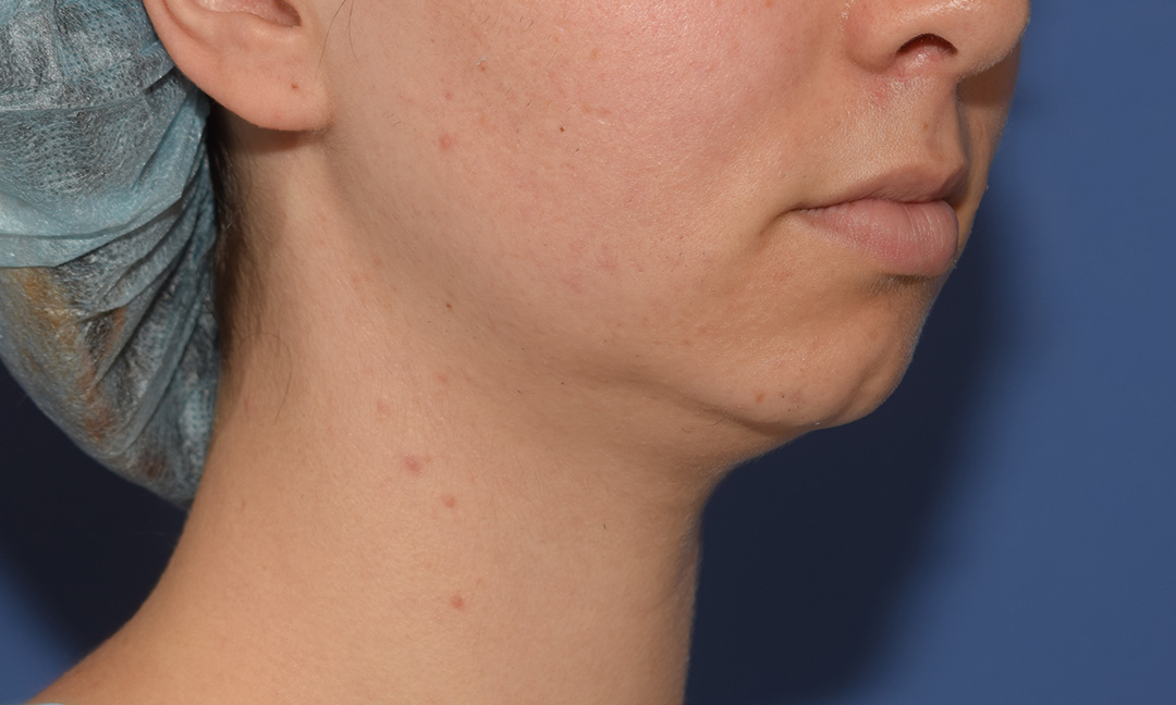 Die Patientin hat eine leichte Fetteinlagerung am Doppelkinn, welche sie sehr stört