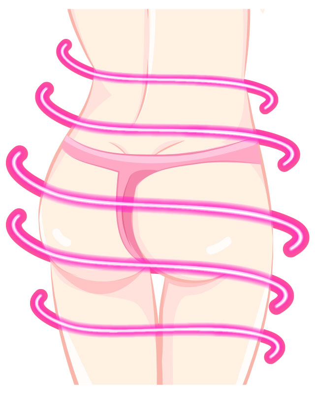Effekt: Die Taille wird massiv betont, und der Übergang zum Gesäß wird deutlich definierter und angehoben.